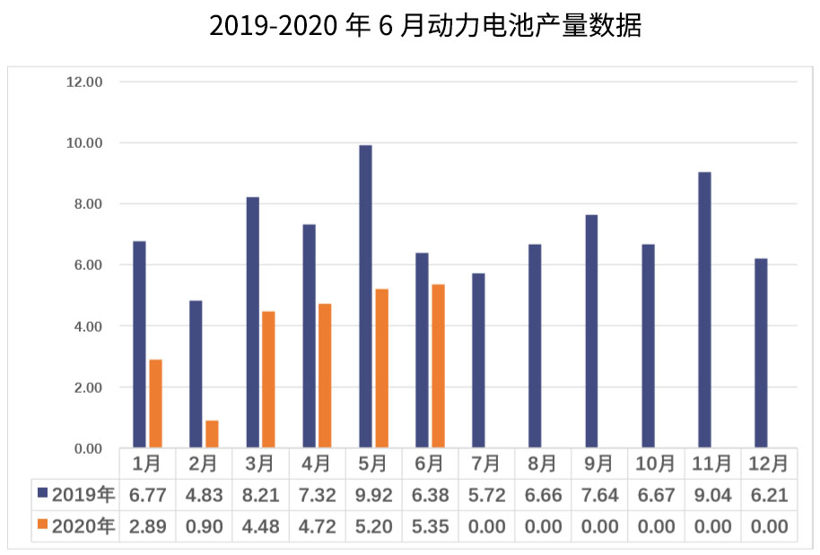 20201-6月,我国动力电池产量累计23.5GWh,同比累计下降