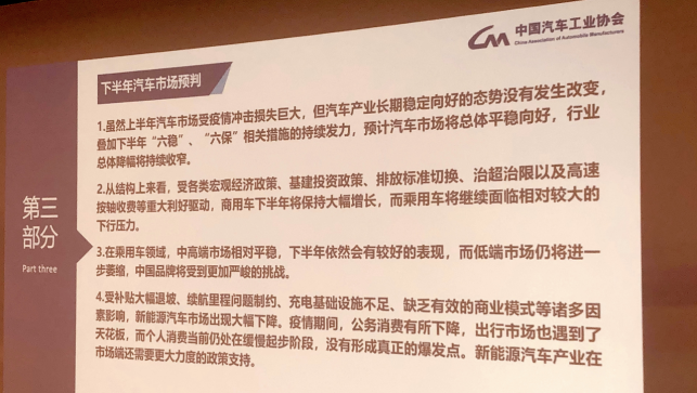 具体至乘用车在下半年的市场表现预测上,付炳锋认为中高端市场将相对平稳,可以在未来几个业内保持良好的市场变现,但低端市场仍将面对进一步的萎缩,自主品牌将面对更加严峻的挑战。曾经被寄予厚望的新能源汽车市场由于收到补贴大幅退坡、续航里程不足、充电基础设施布局不完善、缺乏有效的商业模式等原因影响,在下半年也有可能出现销量下降的问题。由于疫情期间公务消费有所下降、出行市场出现天花板等原因,加之个人消费目前仍处于起步价段,新能源汽车市场尚未形成真正的爆发点,在市场段仍需要更大力度的支持。对此,付炳锋将新能源汽车下乡作为一种有效的探索模式,希望新能源汽车在产业爬升阶段能够找到多个消费爆发点,以支持这个新兴产业进一步发展。