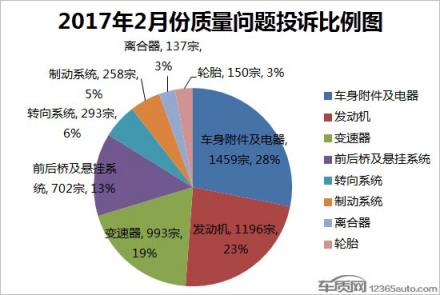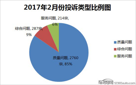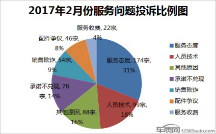 目前,车质网接到的投诉主要分为质量问题、服务问题及综合问题三大类。2月份,这三类投诉问题均有不同程度的降幅,其中质量问题投诉量较1月减少了111宗,虽继续呈现下降趋势,但占比增加了2个百分点。相比之下,同期服务问题投诉量降幅最大,投诉量环比减少61宗,较1月下降了22.2%。 在2月份车质网接到的质量投诉中,车身附件及电器部分故障问题依旧最为集中,不过投诉量却较1月减少了98宗。相比之下,发动机、变速器与轮胎部分投诉量则环比有所增多,其中发动机投诉增加了73宗,环比增长6.5%;变速箱投诉增加了74宗,环比增长8%。而尽管轮胎投诉较1月份的增量不大,但环比增幅却最高,较1月份增长16.3%,依然集中在轮胎起皮及开裂问题中。 2月,在涉及服务问题投诉中(包含综合问题),“服务态度”投诉量为174宗,较1月下降11.7%,但占比并未发生变化。或因吉利汽车产能问题逐渐被缓解,同期“承诺不兑现”问题投诉量锐减近半,占比减少了9个百分点。相比之下,配件争议与服务收费问题投诉量,则呈现不同程度的增长。在服务问题投诉中,合资品牌服务态度问题最为突出,而自主品牌则在“人员技术”及“承诺不兑现”问题方面则超过合资品牌。 从创立伊始,车质网便一直致力于成为车主与车企之间协调解决消费纠纷的优选第三方,终极目标是推动企业重视产品缺陷,积极解决更多车主的合理诉求。据车质网统计,2017年2月份共有821宗投诉因厂家解决得当投诉人自愿申请撤诉,较2017年1月增加了4宗。同期,车质网投诉撤诉率达到25.5%,较2017年1月增长了1.8个百分点。其中,2月份撤诉最多的前八品牌,均被自主所包揽,而斯柯达则成为撤诉最多的合资品牌。数据显示,2月份投诉回复率达100%的车企有37家,与2017年1月相比增长了2.1倍,此外,另有9家车企回复率达到90%以上。