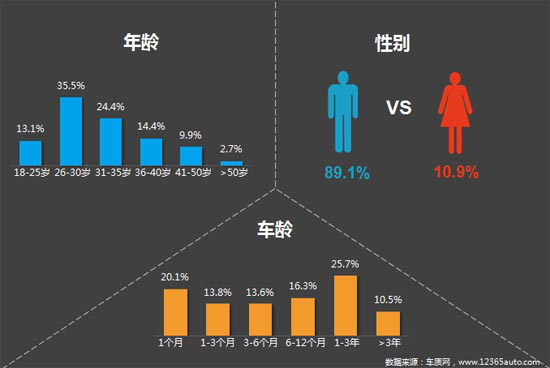 2017年一季度消费者投诉男女比例为89.1:10.9,男性投诉占比较2016年四季度有所增加。从年龄分布来看,投诉依然集中在年龄为26-30岁之间的消费者中,但较2016年四季度占比有所下降。相比之下,年龄在31岁及以上的消费者投诉占比则有所增加。而从车龄看,使用3-6个月及1-3年的车辆投诉环比呈上升趋势,其中使用1-3年的车辆投诉最集中。此外,购车仅1个月内的新车投诉占比达20.1%,其质量表现令人堪忧。