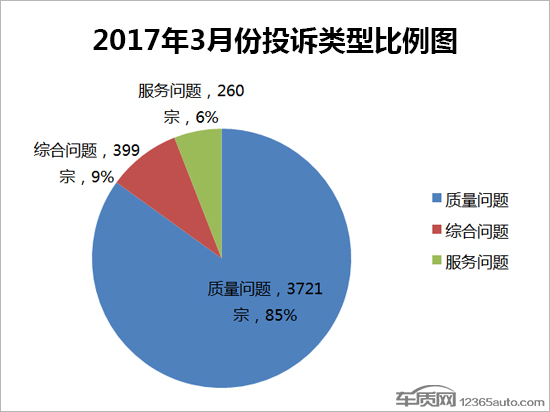 目前,投诉主要分为质量问题、服务问题及综合问题三大类。3月份,这三类投诉问题均有不同程度的增幅,其中质量问题投诉量较2月增加了961宗,上升趋势明显,但占比未发生变化。同期,综合问题投诉量环比增加112宗,较2月上涨了39%。