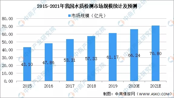 随着我国经济快速发展、城镇化和工业化进程推进,我国水污染日益严重,加剧了水资源短缺的矛盾。近年来,国家陆续出台了多项环保政策以推进水环境质量的改善。据统计,我国水质检验检测行业市场规模从2015年的43.10亿元增长至2019年的61.17亿元,年均复合增长率达9.15%。