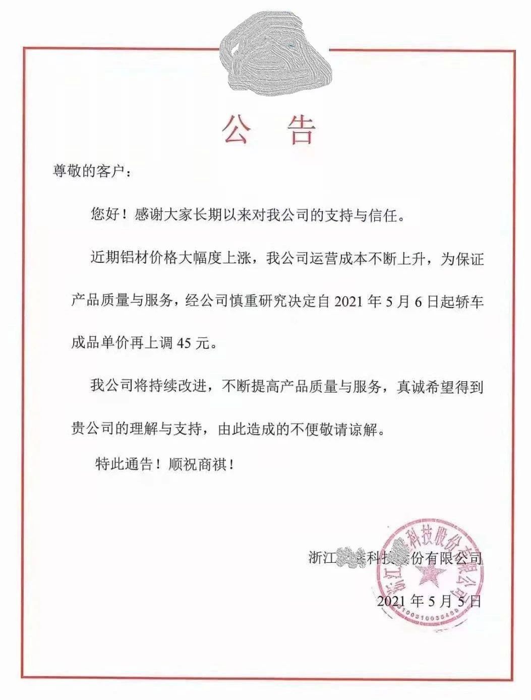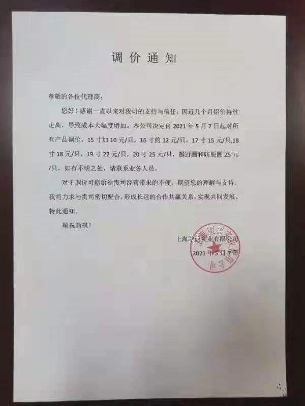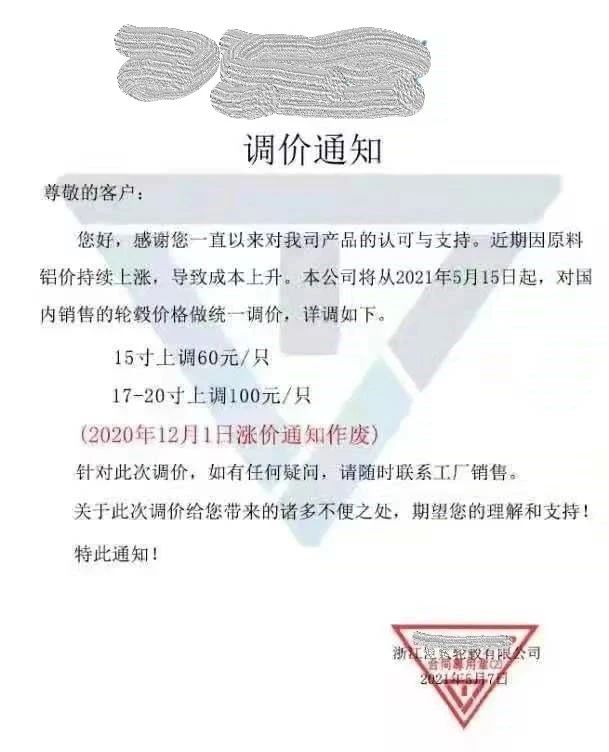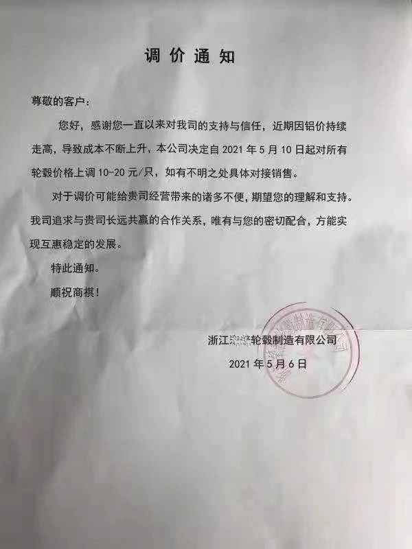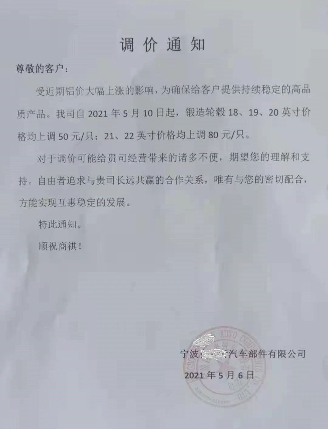 受全球大宗商品价格上涨的影响,五一假期刚刚结束,铝合金轮毂市场上就掀起了一股涨价潮。一些媒体上公布了多家铝合金轮毂厂的涨价通知单,虽然这些信息的真实性还有待证实,但这种涨价的冲动却也在情理之中。