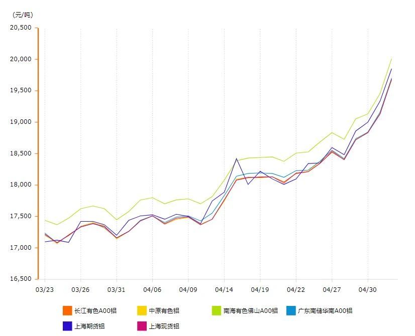 2021年春节过后,A00铝锭价格就开始不断向上攀升,特别是最近一个多月涨速之快为史上所罕见,3月23日A00铝锭长江现货均价还是17200元/吨,到5月10日就已涨到20020元/吨,涨幅高达17.4%,每吨铝锭价格上扬了整整3000元。这就是说一只10KG的铝合金轮毂,仅原材料成本这一项在这一个半月内就增加了30元人民币。俗话说“杀头的买卖有人干,赔本的生意没人做。”随着全球政治经济形势的复杂化,市场对铝价会长期运行在高位的担忧已经被越来越多的人所认同,所以铝合金轮毂的这一波涨价也就不甚突兀了。