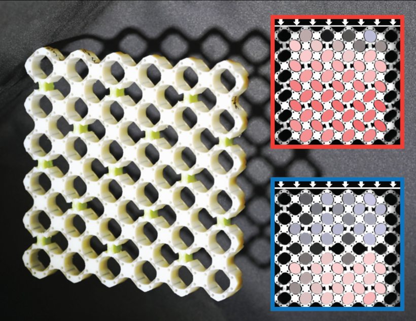 此项研究由阿姆斯特丹大学(University of Amsterdam)的物理学家Aleksi Bossart、David Dykstra、Jop van der Laan和Corentin Coulais领导。采用上述工具箱,这些物理学家创建出一种材料,可在被快速或缓慢压缩时改变其行为。此类新材料可应用于汽车减震器、可承受地震的建筑材料或可调节流量的压力阀。