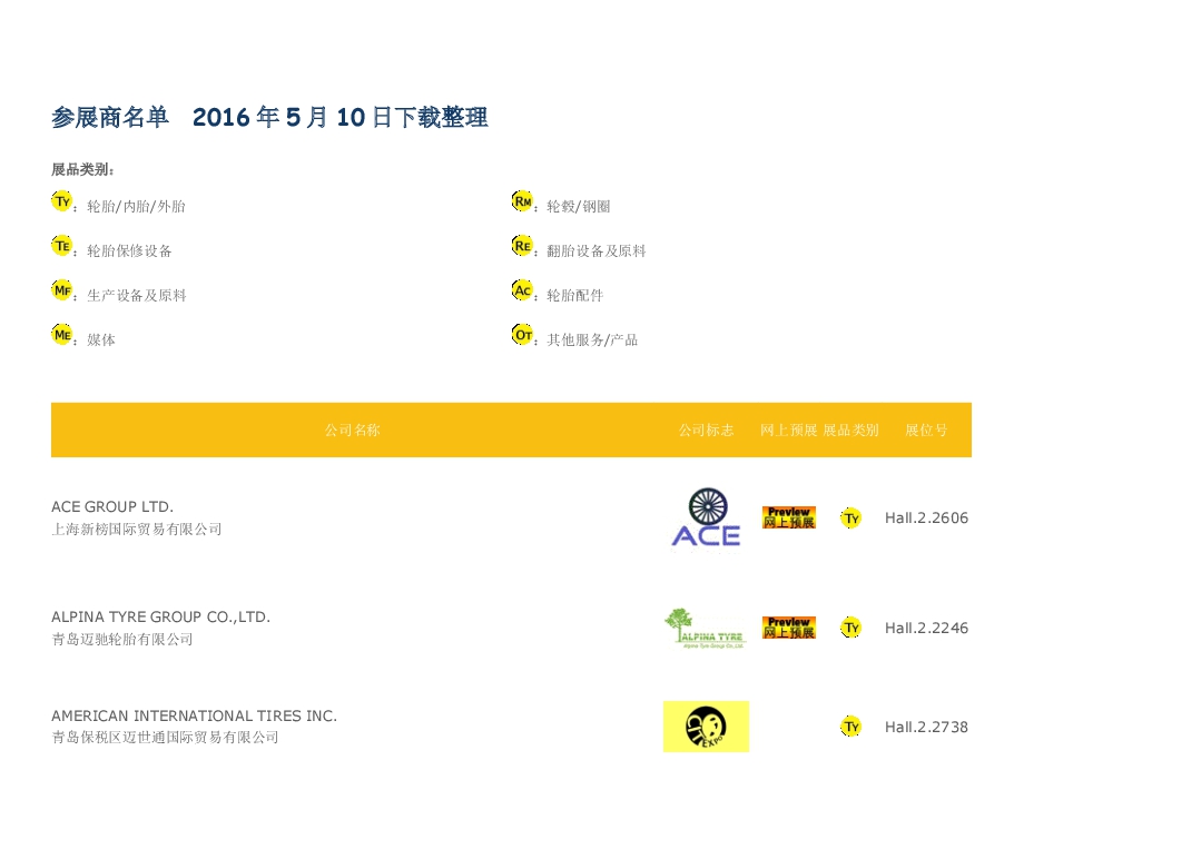 2016上海海富轮胎展会参展商名单参展商名单